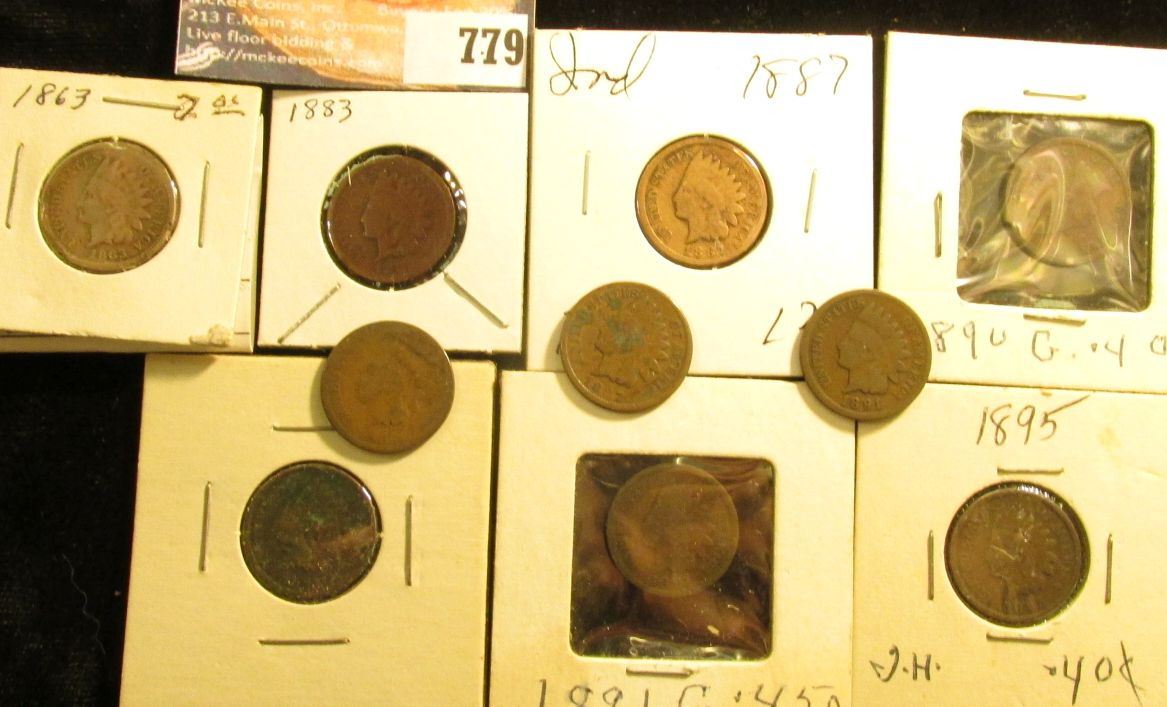 (10) Indian Head Cents, dating 1863-1899, all different dates, various grades.