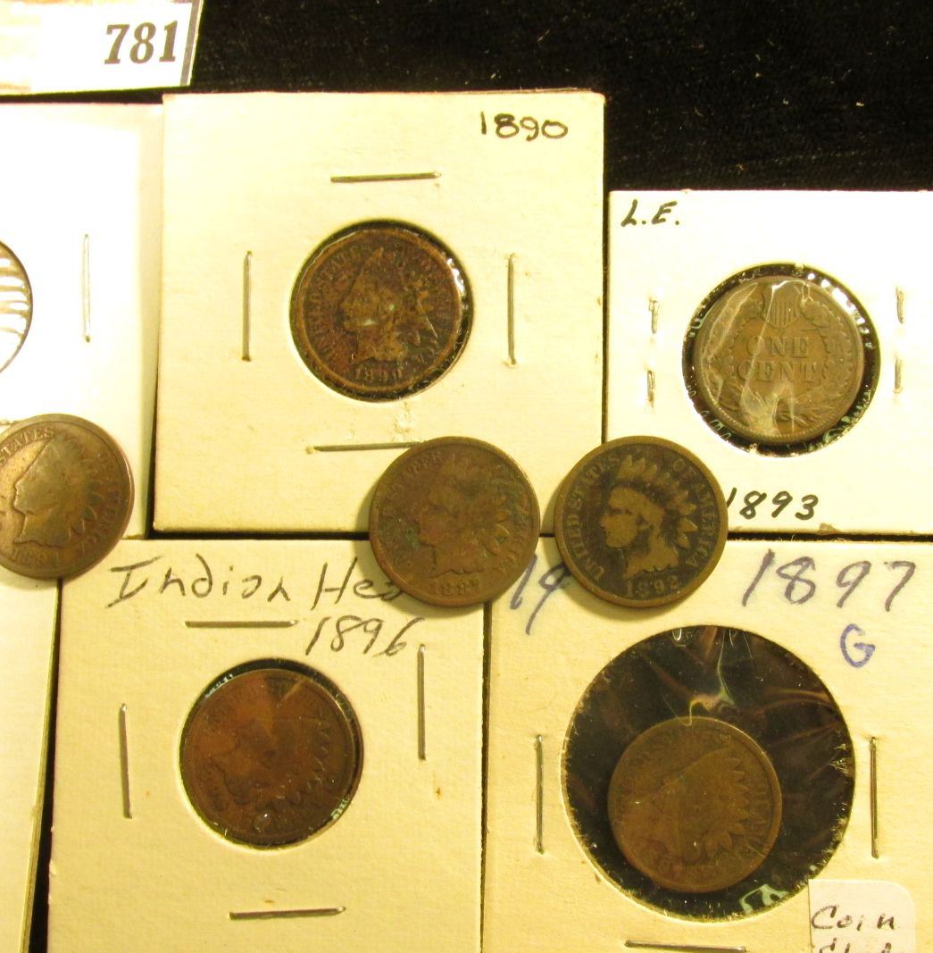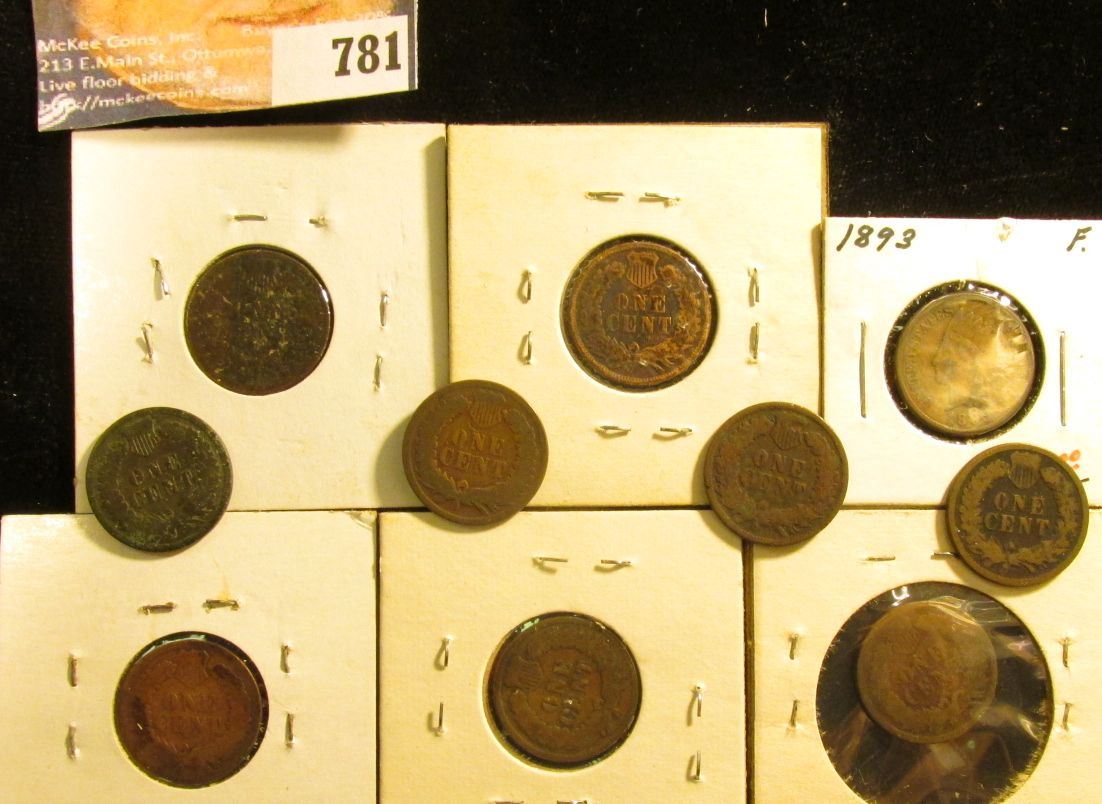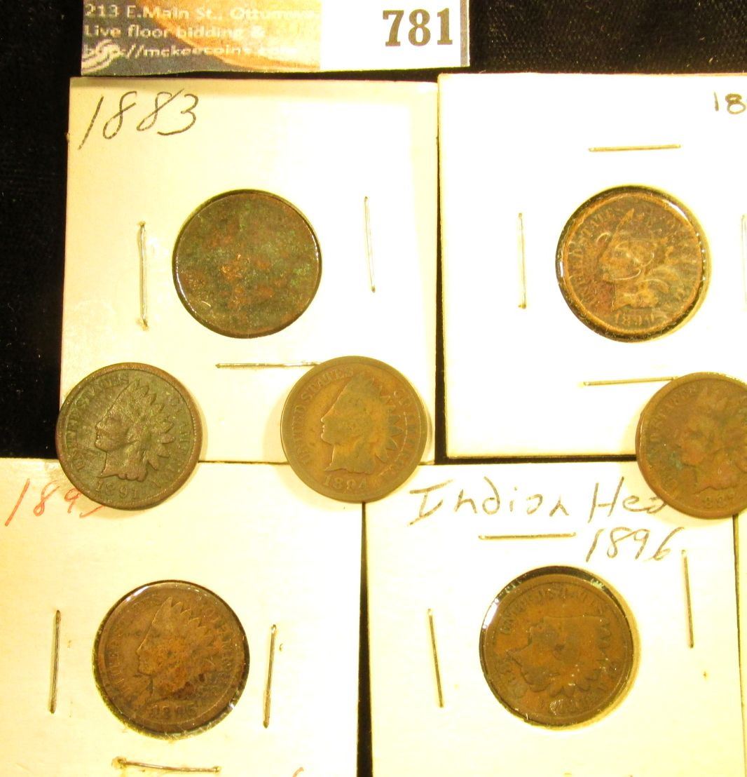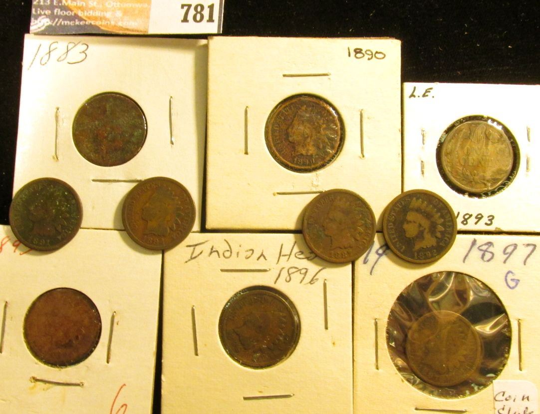 (10) Indian Head Cents, dating 1883-1897, all different dates, various grades.