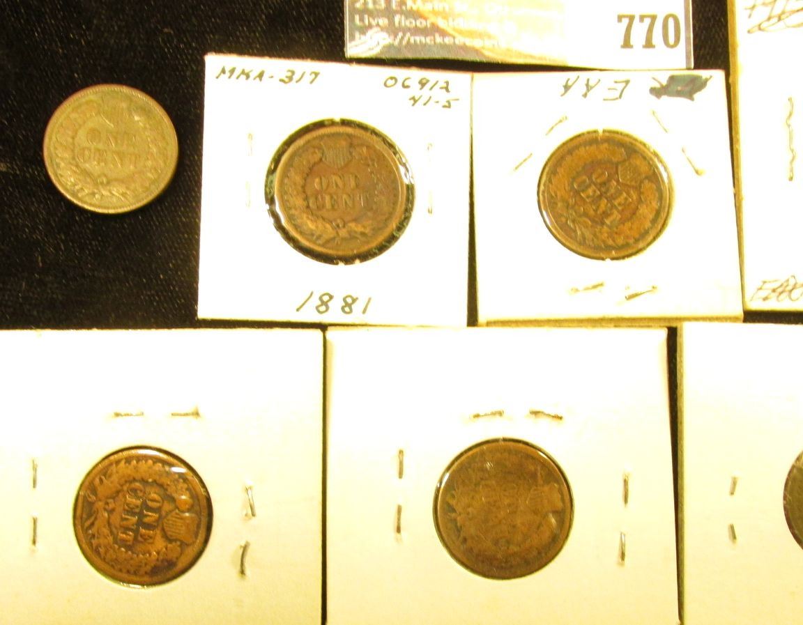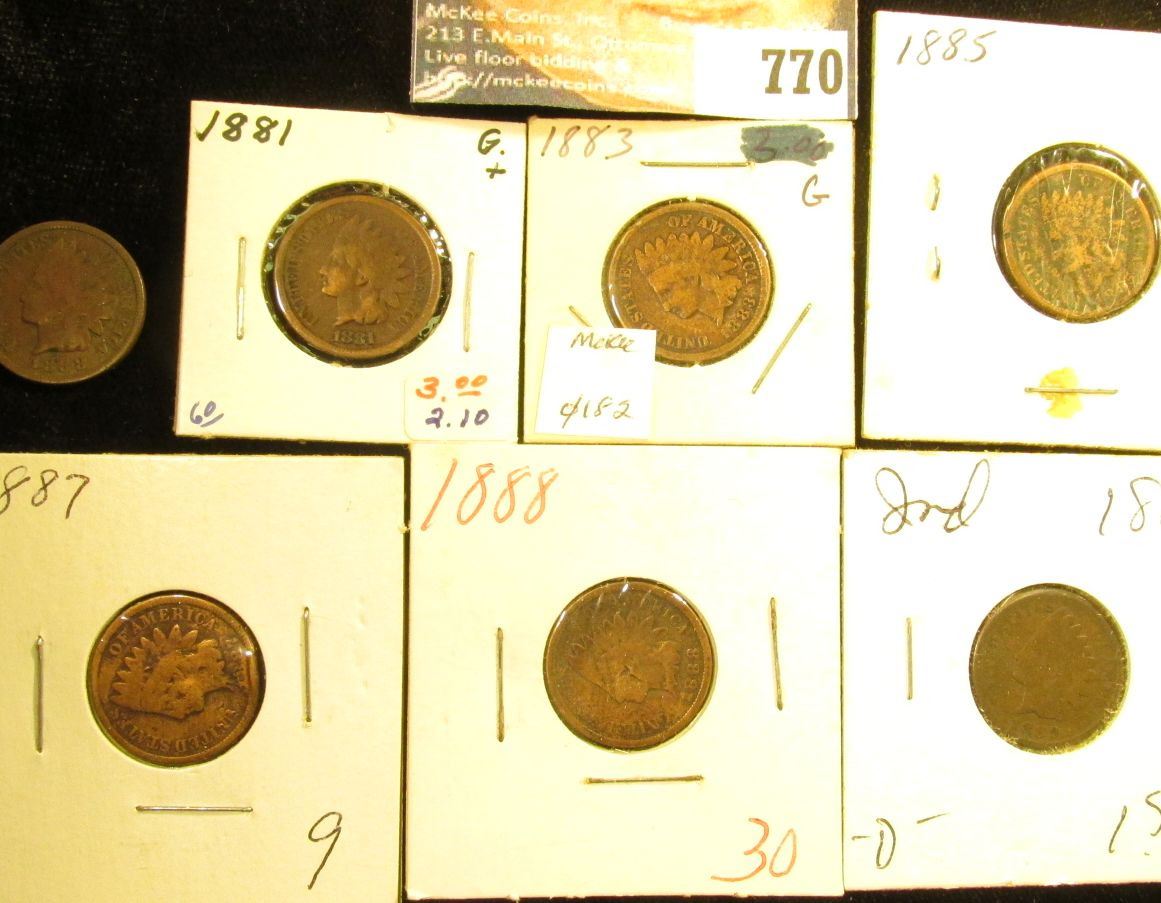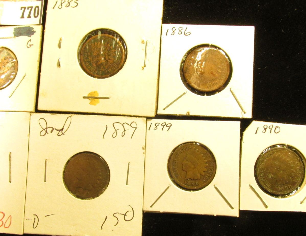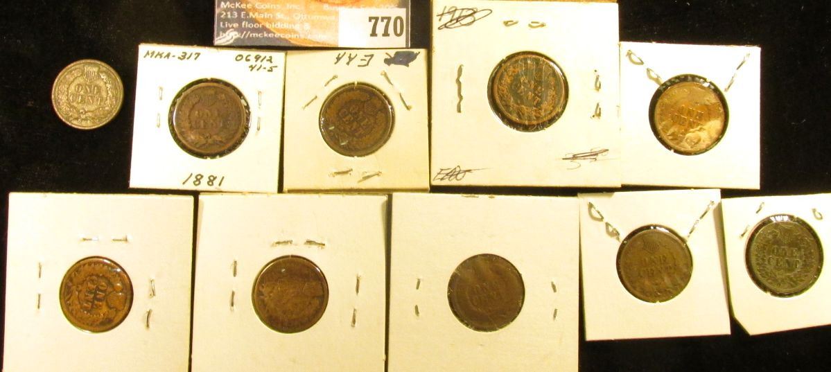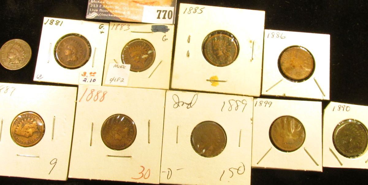 (10) Indian Head Cents, most in holders. All dating 1881-1899, various grades.