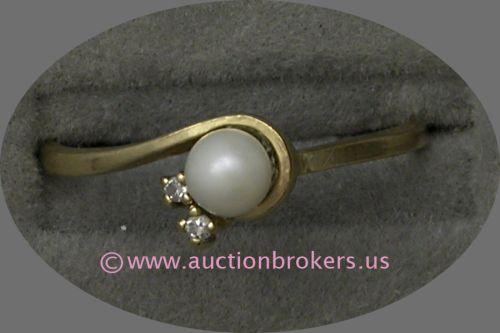 10 K YELLOW GOLD LADIES GEMSTONE RING SET WITH A CULTURED PEARL 4.5 MM AND A CUBIC ZIRCONIA ACCENT STONE+C193. 1.2 GRAMS.