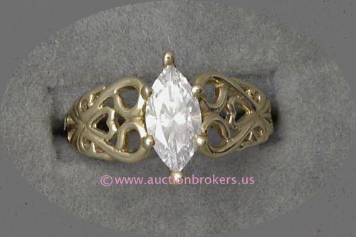 10 K YELLOW GOLD LADIES GEMSTONE RING SET WITH ONE MARQUISE CUT CUBIC ZIRCONIA STONE. 3.3 GRAMS.