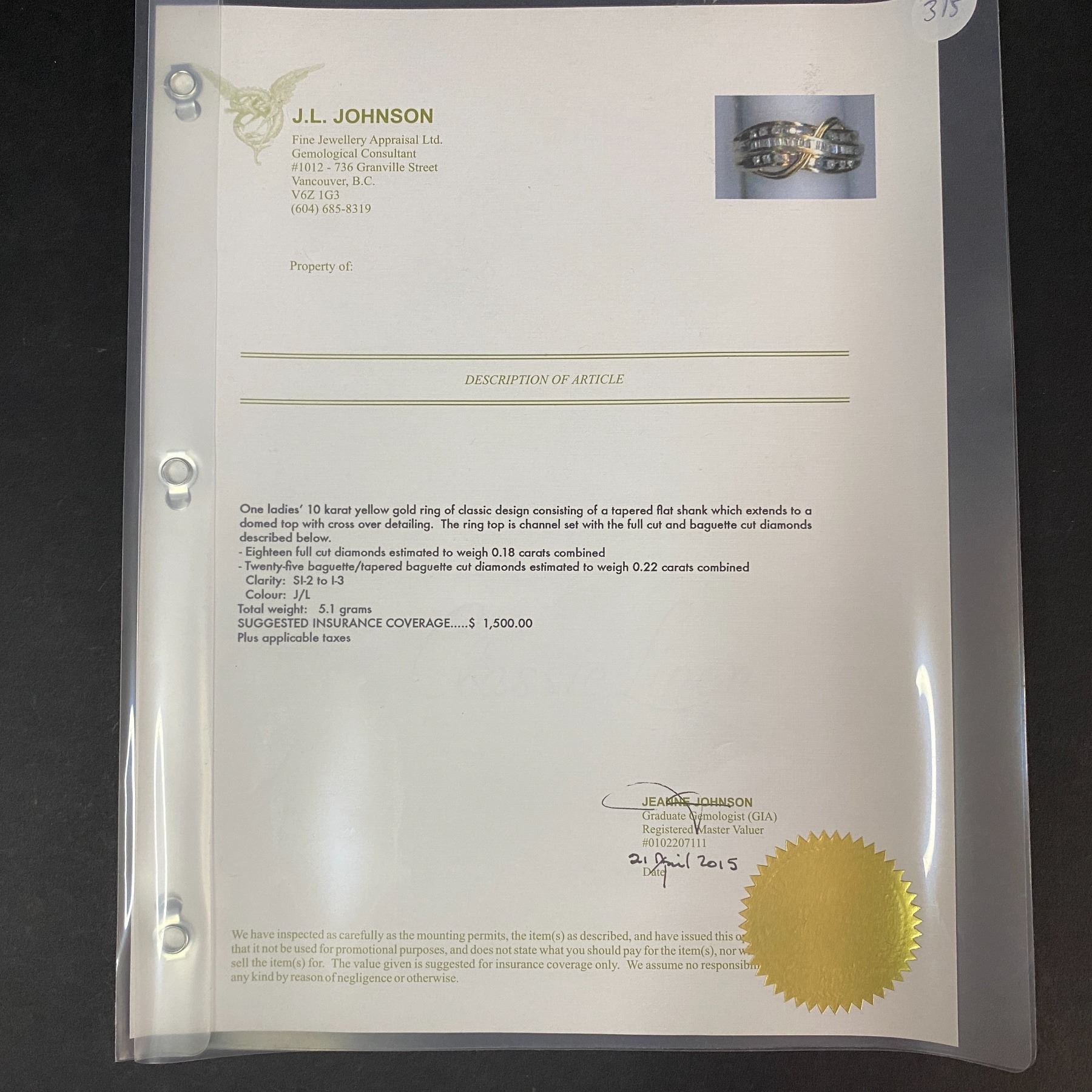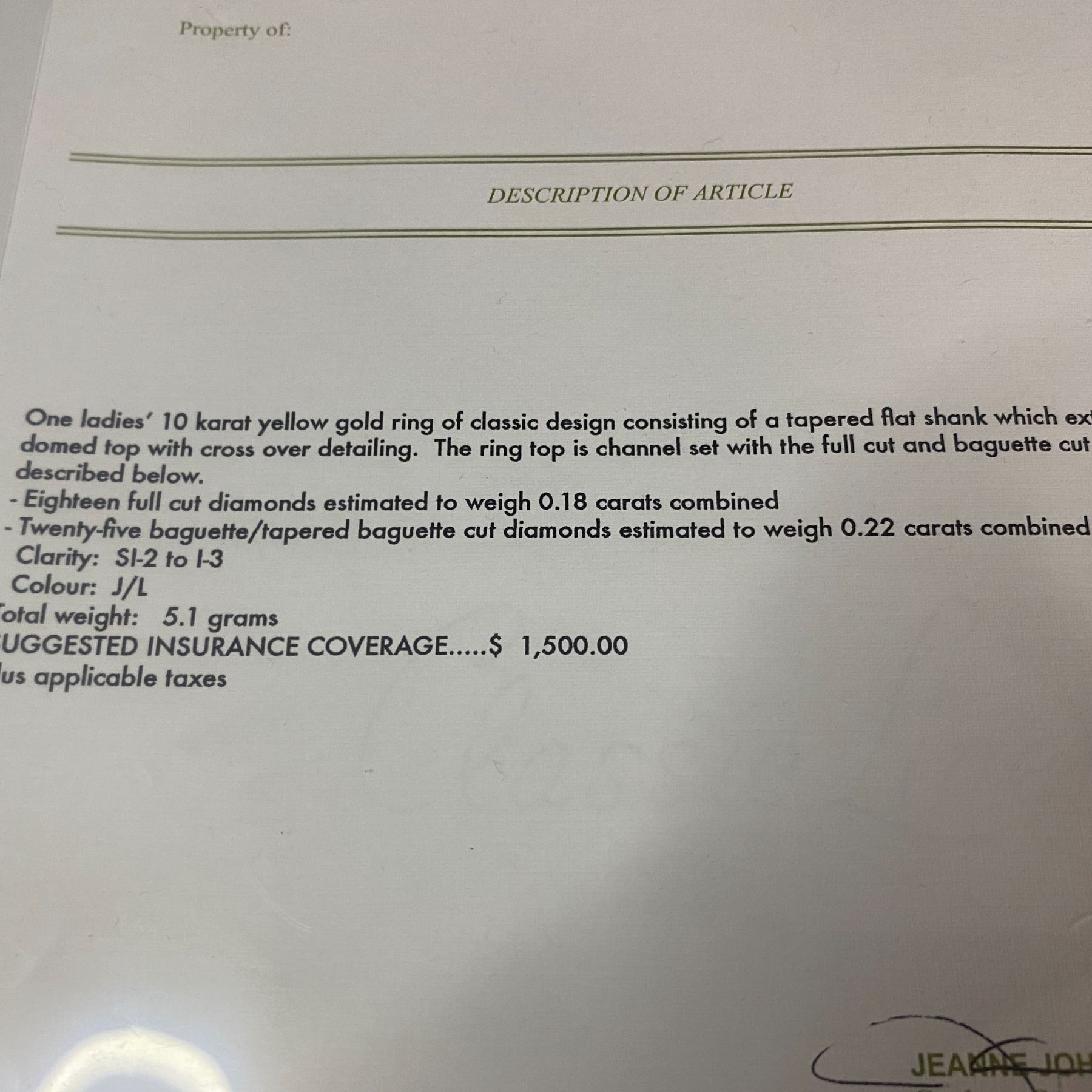 10 KARAT YELLOW GOLD RING TOTAL WEIGHT 5.1 GRAMS INSURABLE VALUE $1,500.00
