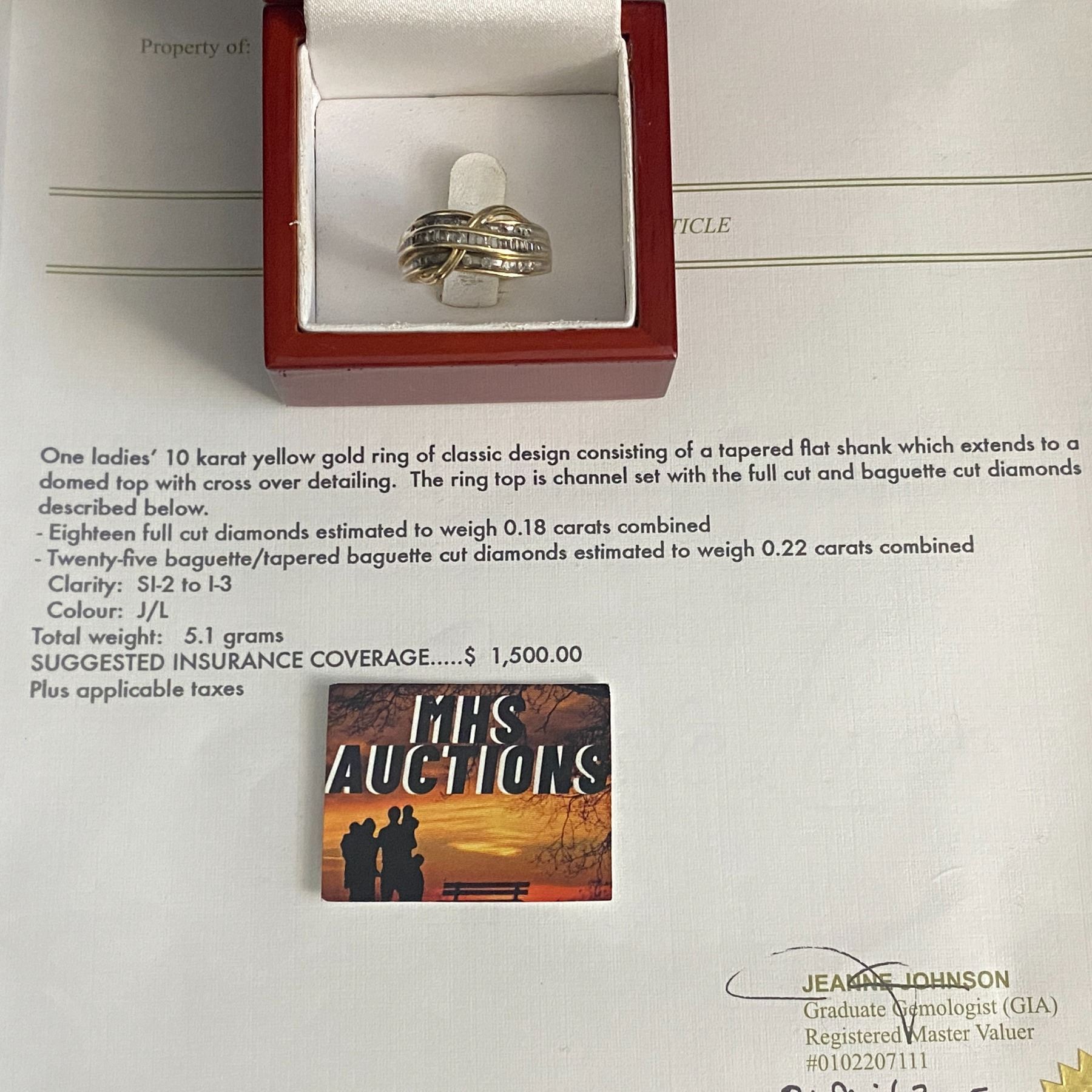 10 KARAT YELLOW GOLD RING TOTAL WEIGHT 5.1 GRAMS INSURABLE VALUE $1,500.00