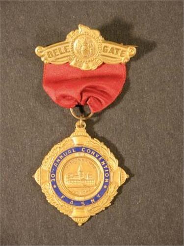 10 k. gold fire fighting medal, delegate for 30th annual convention F.A.S.N.Y. Hudson, NY 1902, 4" long.
