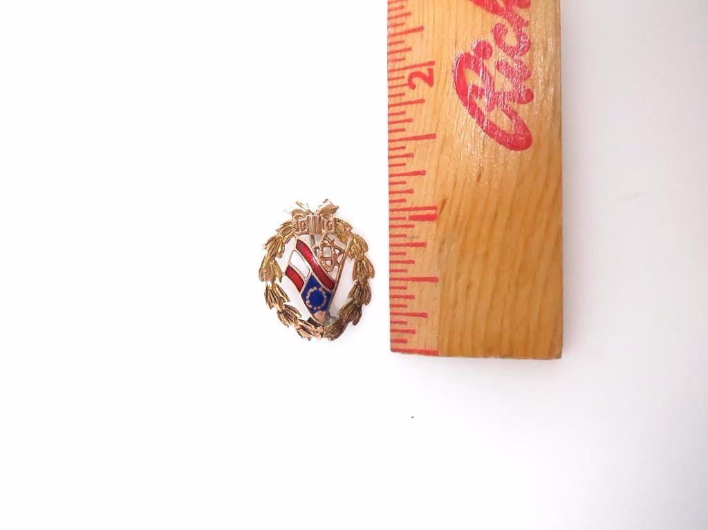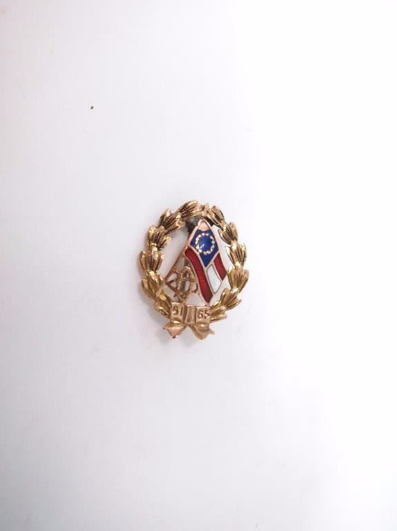 United Daughters of the Confederacey reunion pin. Small chip in the enamel. This is about the rarest confederate reunion item. about 1 x .5"