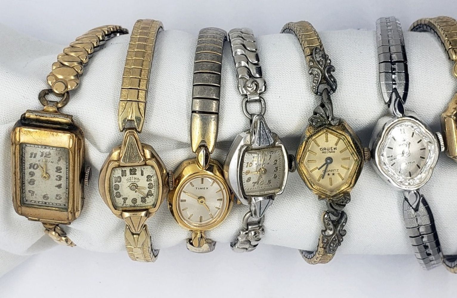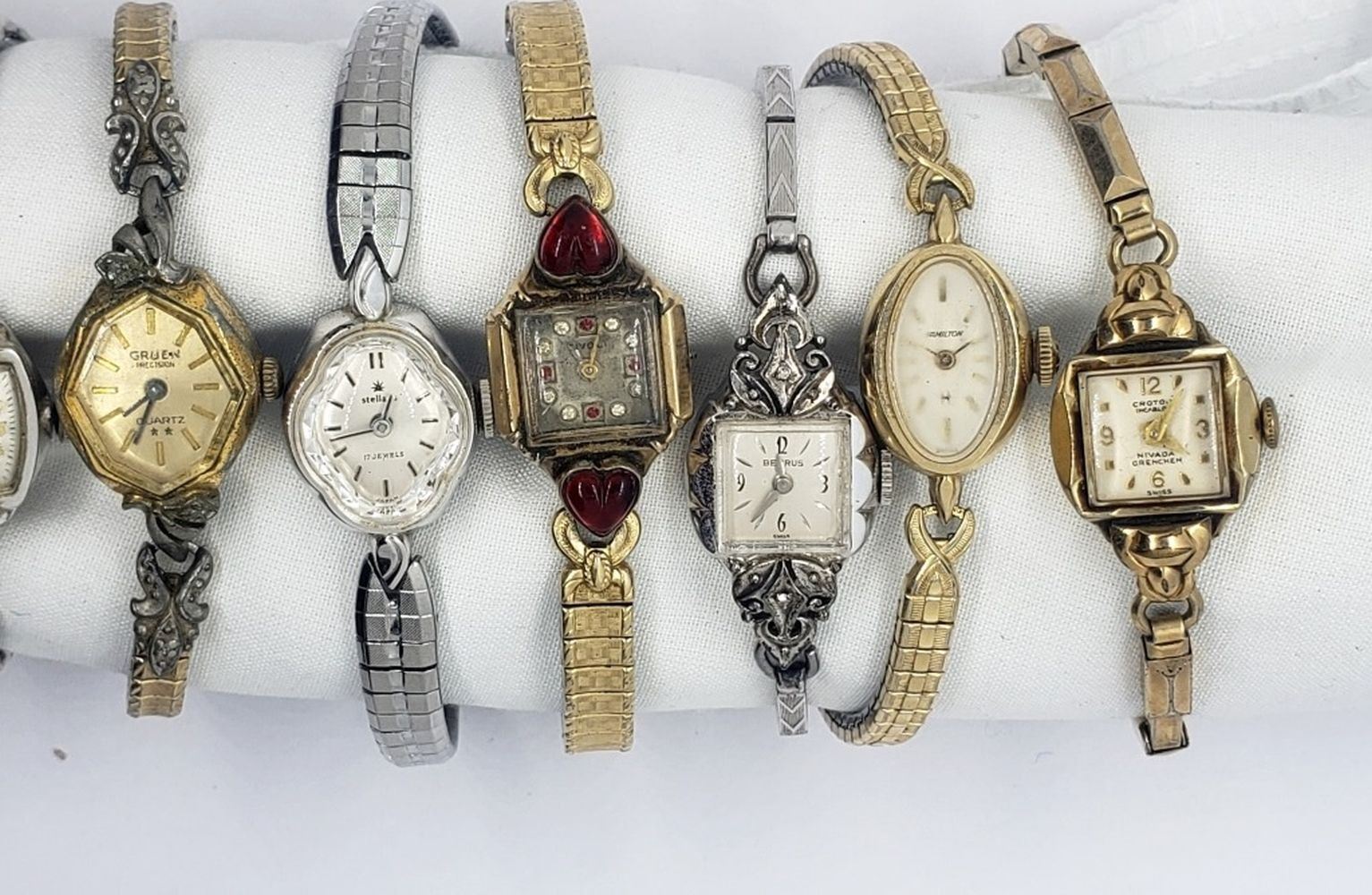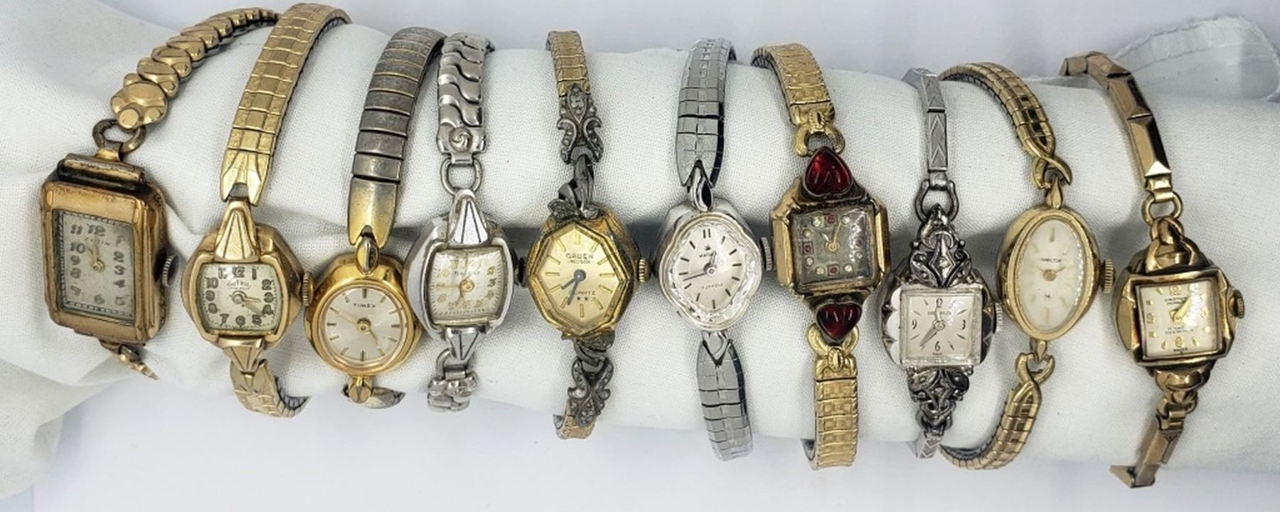 TIVOLI (MISSING STEM), GRUEN, HAIMILTON, GOTHIC, TIMEX, CROTON, BULOVA, BENRUS,STELLARUS, ELGIN (NOT RUNNING - NO MISSING PARTS UNLESS MENTIONED)