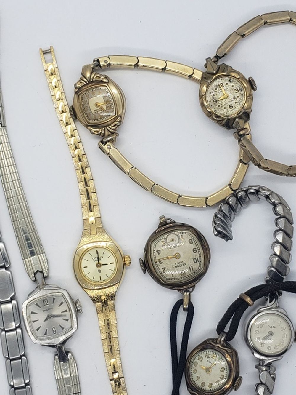 GRUEN (10K GOLD FILLED), AVALON, CITIZENS, GIVENCHY, BULOVA, NORMAN, GRUEN (MISSING CRYSTAL), KELTON (BROKEN BAND), 2-ELGIN (BROKEN BANDS) - ((NOT RUNNING UNLESS MENTIONED- NO MISSING PARTS UNLESS MENTIONED)