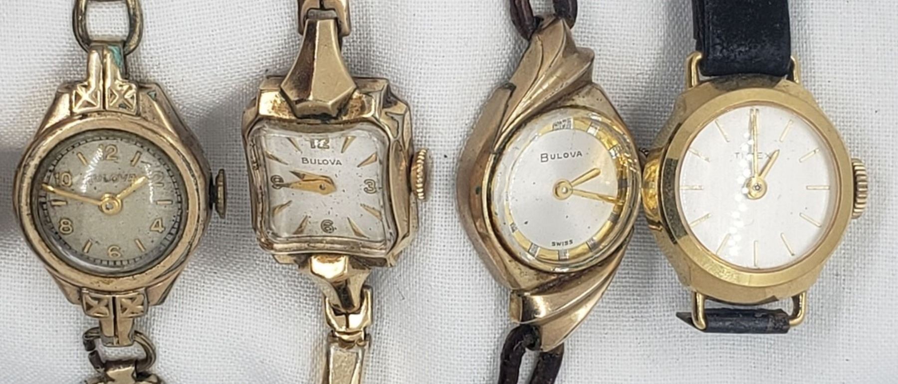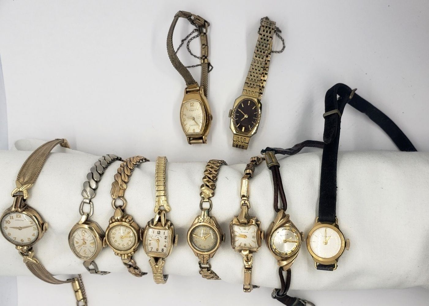 HAMILTON (10k GOLD FILLED),3- BULOVA, LADY ELGIN (14k GOLD FILLED) ELGIN, SEIKO, HELBROS, 2-TIMEX 1-BROKEN BAND) - ((NOT RUNNING UNLESS MENTIONED- NO MISSING PARTS UNLESS MENTIONED)