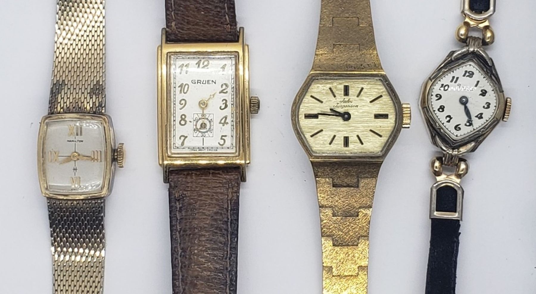 RESCO (MISSING HANDS), BULOVA 10k GOLD FILLED, JULES JURGENSEN, HAMILTON 10k GOLD FILLED, GRUEN, TOSCA, BULOVA, ALPHA, BENRUS, CENTRAL USA MISSING CRYSTAL - (NOT RUNNING UNLESS MENTIONED- NO MISSING PARTS UNLESS