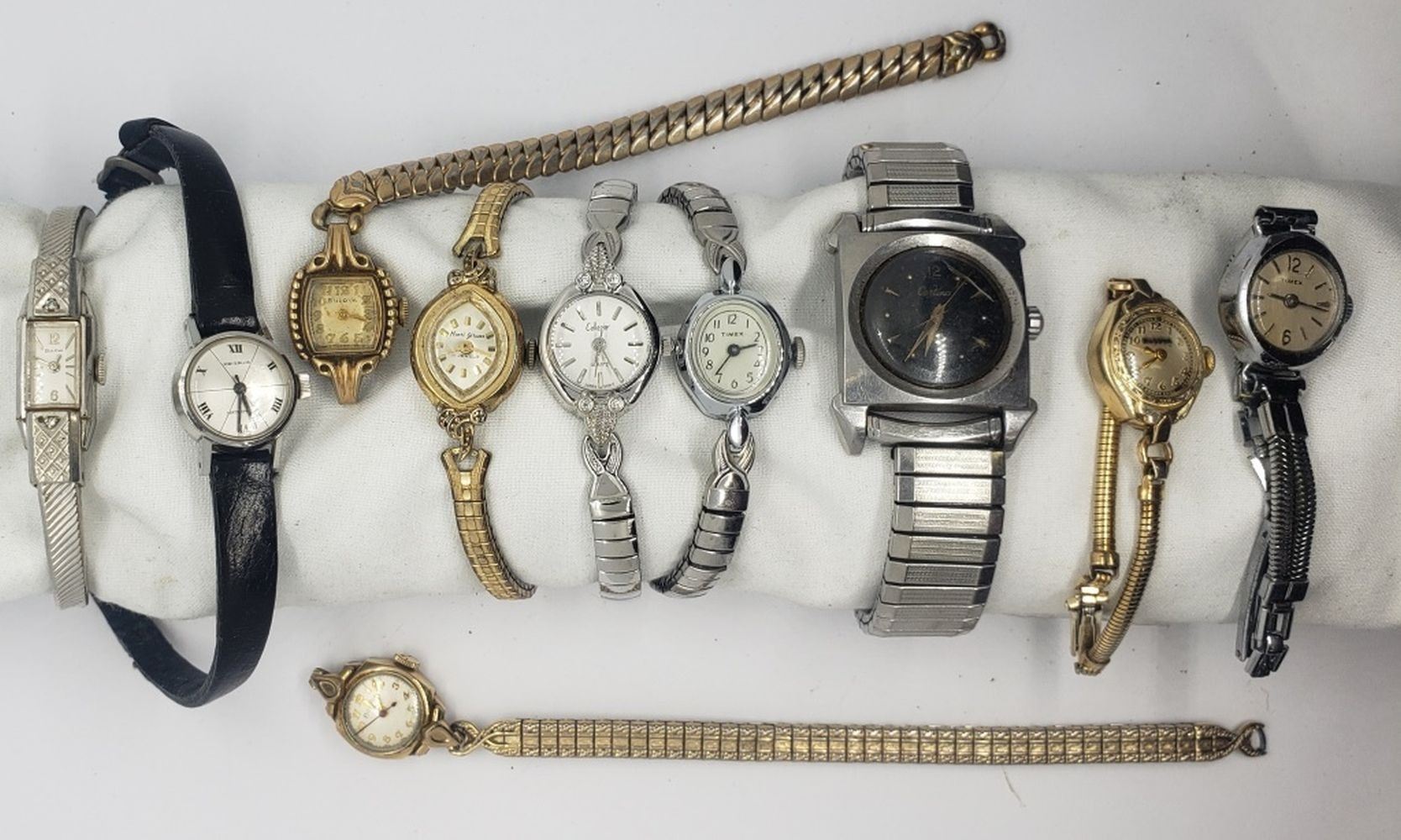 3-BULOVA (1 BAND BROKEN), HENRI GIREAUX, BULOVA 10k GOLD FILLED, 2-TIMEX, COLLEZIO, HENRY B BALL CO (RUNNING), CERTINA - (NOT RUNNING UNLESS MENTIONED- NO MISSING PARTS UNLESS MENTIONED)