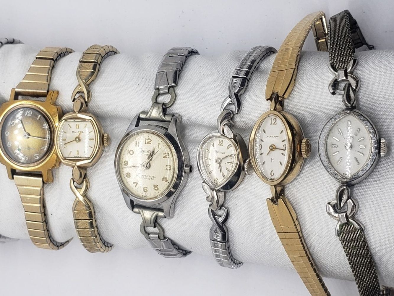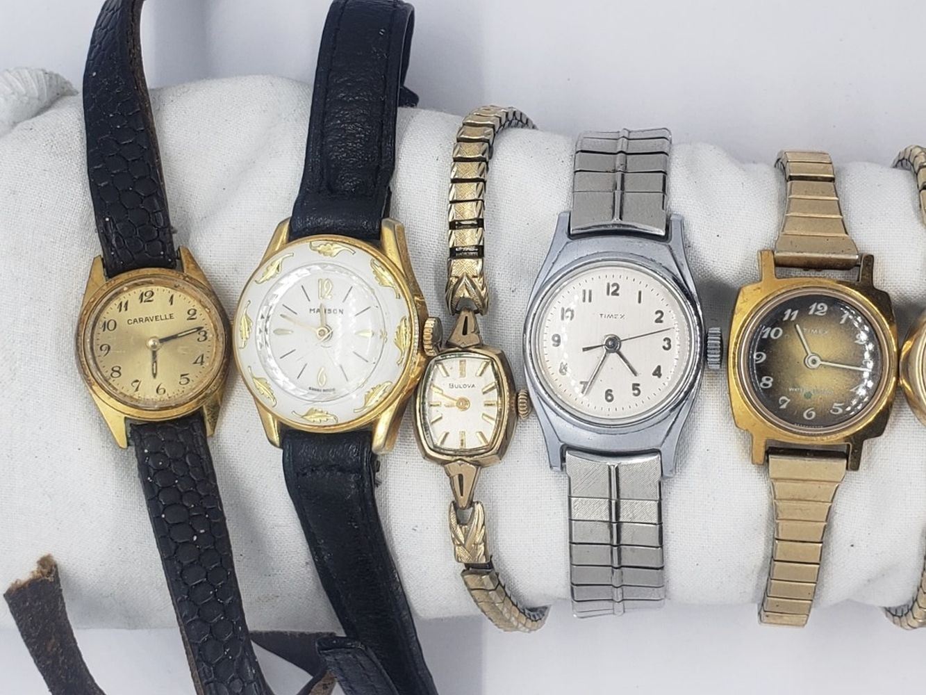 ELGIN, HAMILTON, 3-BULOVA, 2-TIMEX, CARAVILLE, CONTINENTAL, MANSON - (NOT RUNNING UNLESS MENTIONED- NO MISSING PARTS UNLESS MENTIONED)