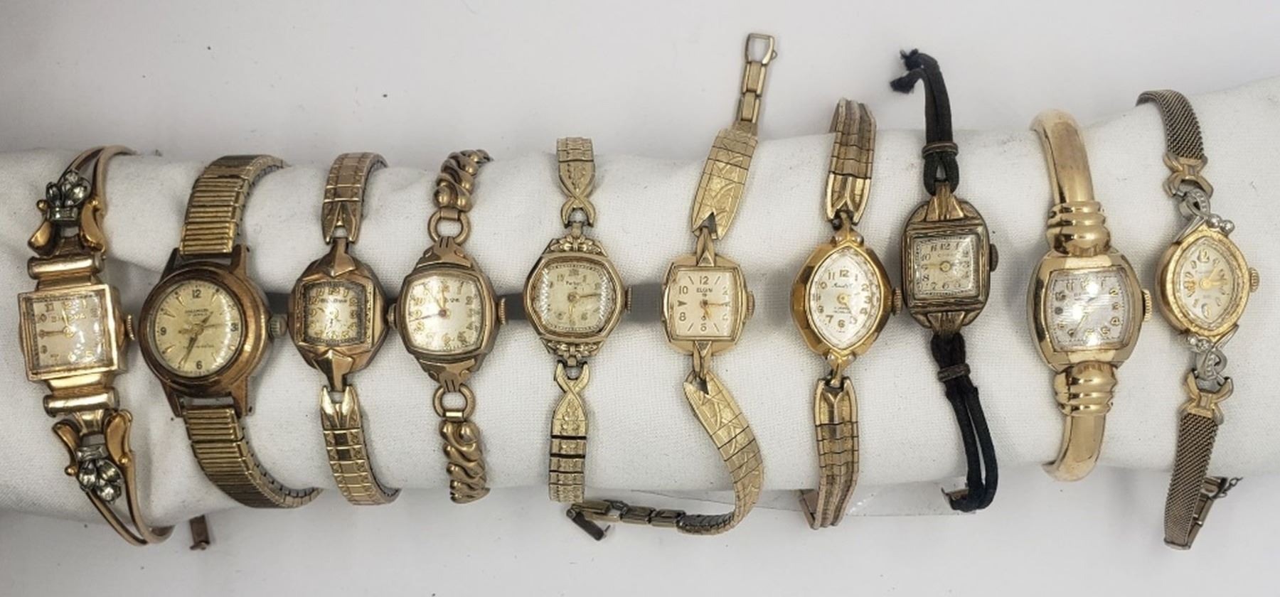 ELGIN, 4-BULOVA, MARCEL & CIE, BENRUS, CYMA (BAND BROKE), PARKER, HALLMARK - (NOT RUNNING UNLESS MENTIONED- NO MISSING PARTS UNLESS MENTIONED)