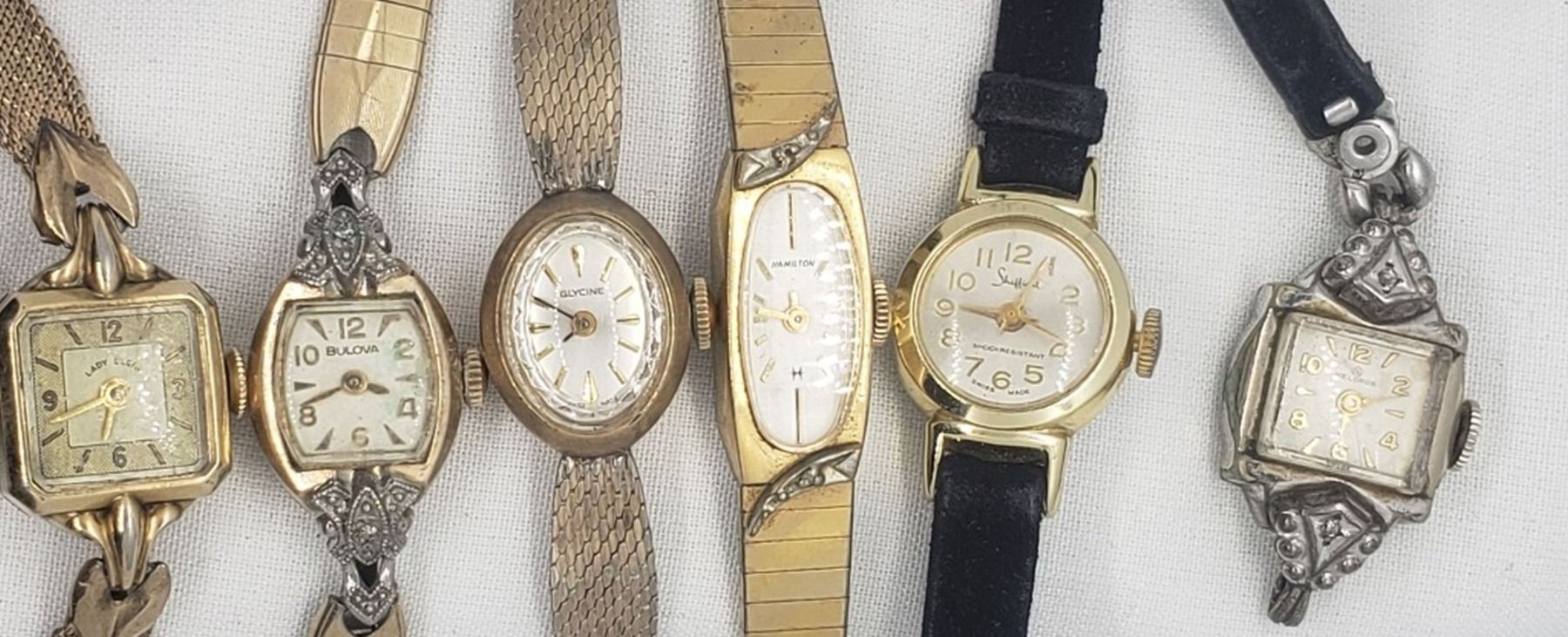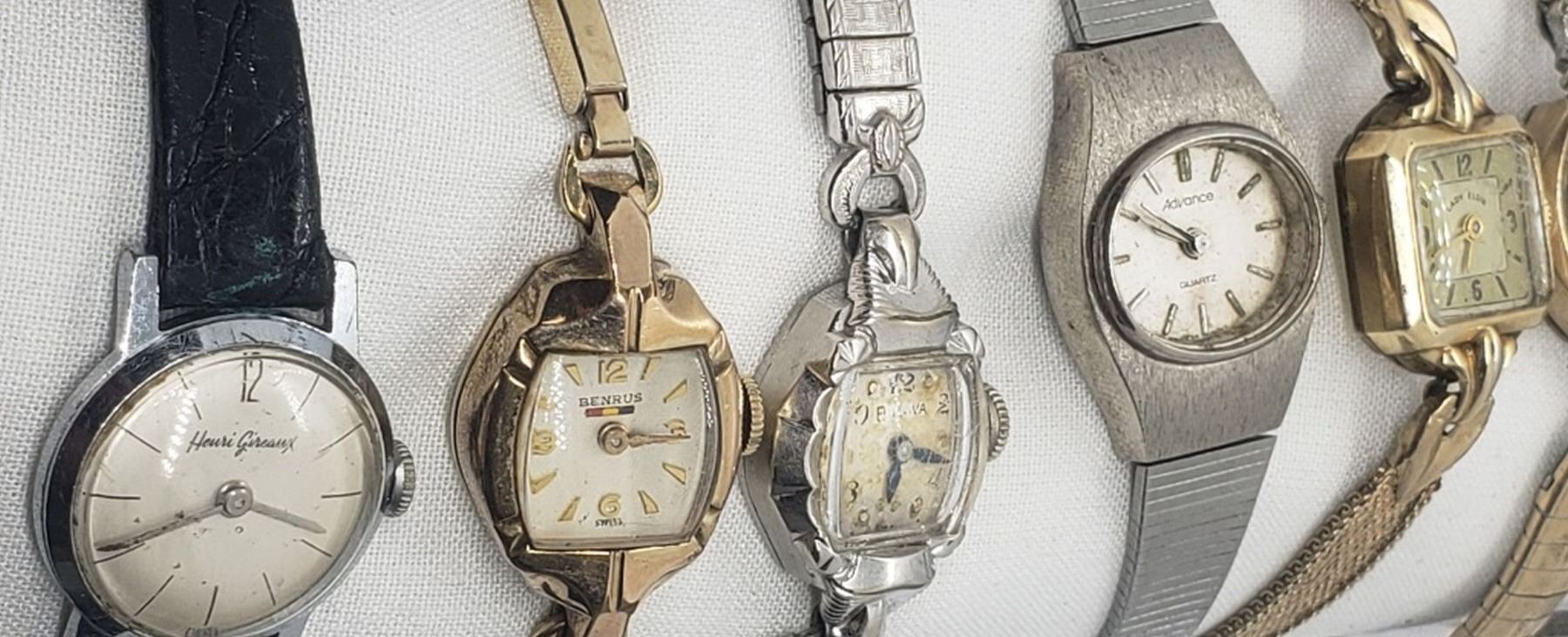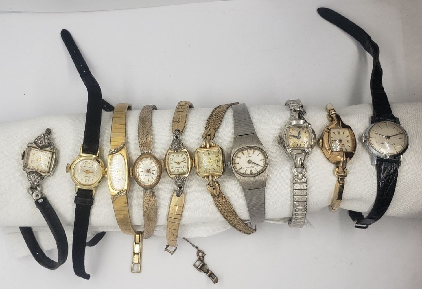 LADY ELGIN 14k GOLD FILLED, BENRUS, 2-BULOVA, GLYCINE 10k GOLD FILLED (CLASP NEEDS REPAIRED), HAMITON, HENRI GIREAUX, HELBROS (BAND BROKE), SHEFFIELD (BAND BROKE), ADVANCE (MISSING CRYSTAL) - (NOT RUNNING UNLESS