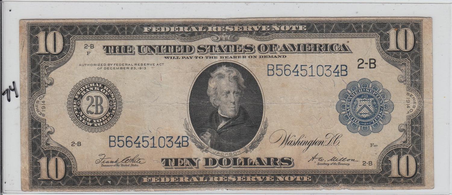 $10 LARGE 1914 FEDERAL RESERVE NOTE