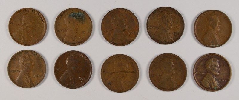 (10) LINCOLN CENTS (09, 09 VDB, 10, 10-S, 11, 11-D, 12, 12-D, 12-S, 13)