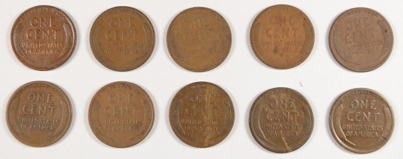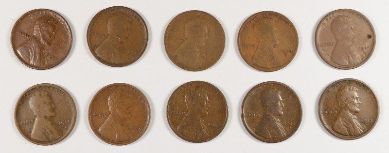 (10) LINCOLN CENTS (09, 09 VDB, 10-S, 11, 11-S, 12-S, 13-D, 13-S, 14-S, 15-D)