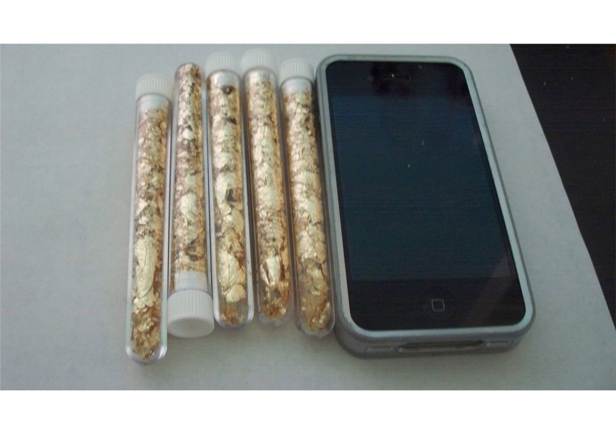 10 Large Vials of Gold Flakes, 4"