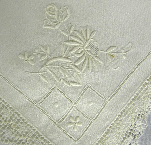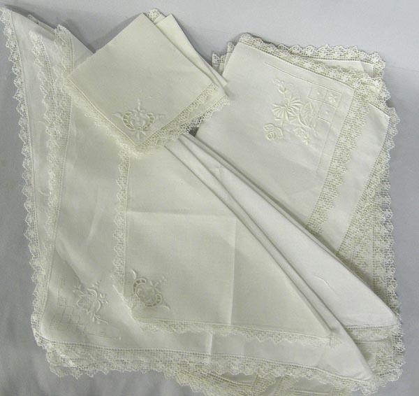 10 Linen Place Mats Plus 4 Napkins, Linen and Lace. Place mats measure approx. 16'' x 16''. SHI $20.