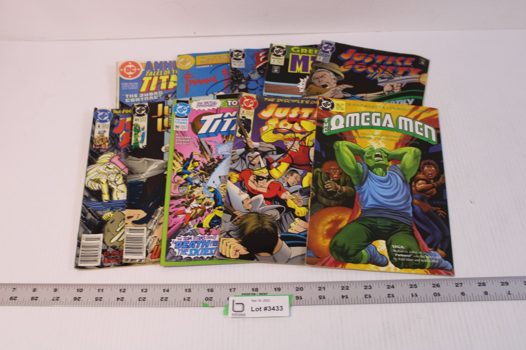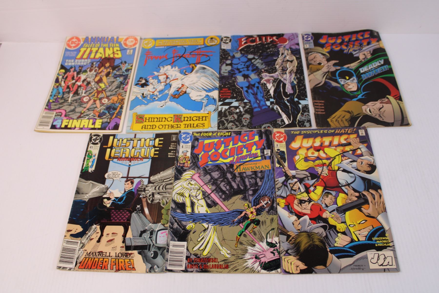 (10) Lot of Assorted Comics - Justice League, Justice Society (Some Have Black Pencil Marks on the Front Covers, Justice Society Comic Coming Apart at Spine)