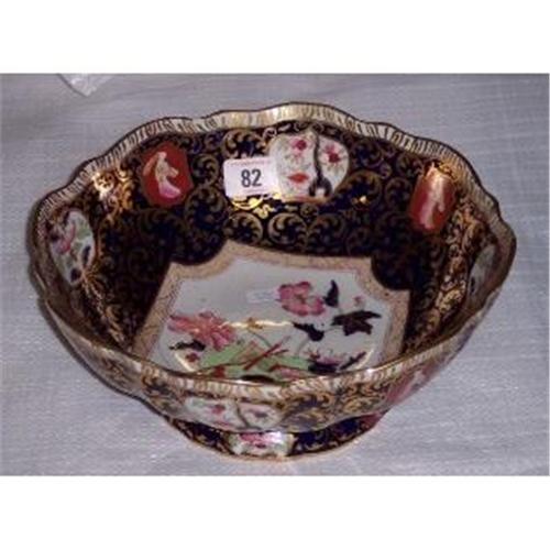 10" MASONS IRON STONE BLUE AND GILT PATTERNED BOWL
