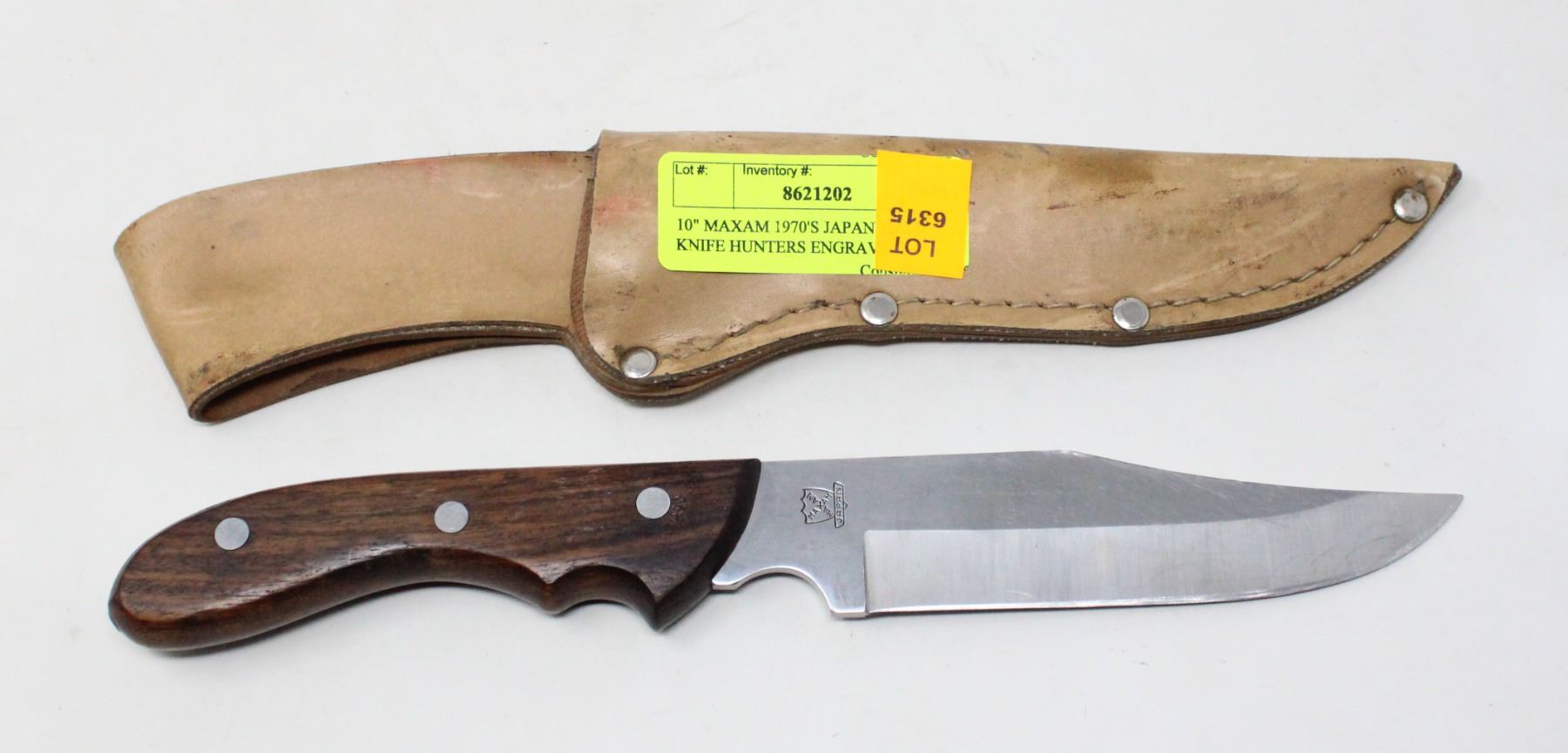 10" MAXAM 1970'S JAPAN MADE KNIFE HUNTERS ENGRAVE