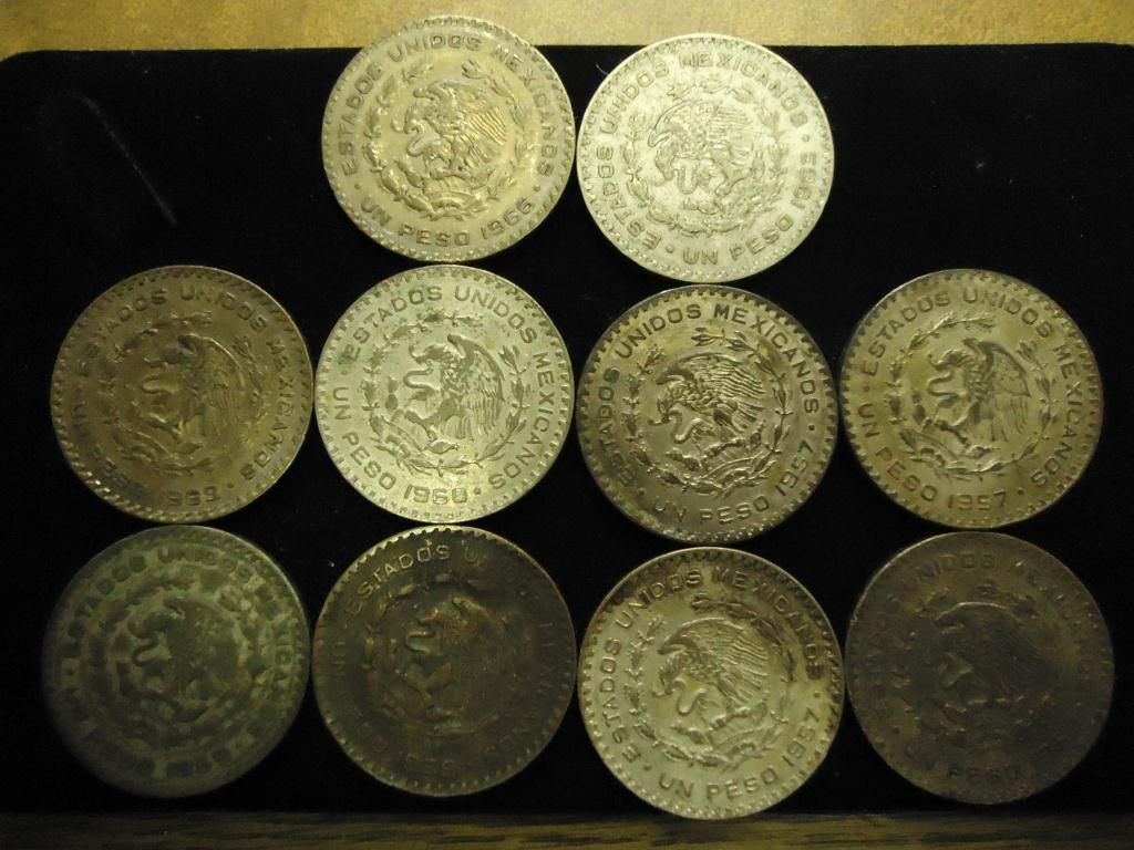 10 MEXICIAN SILVER PESOS .5140 OZ. ASW TOTAL