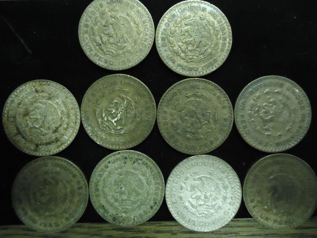 10 MEXICIAN SILVER PESOS .5140 OZ. ASW TOTAL