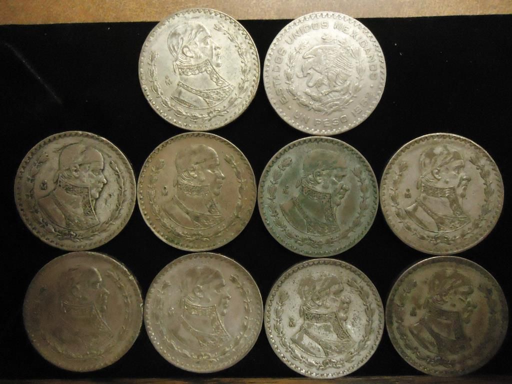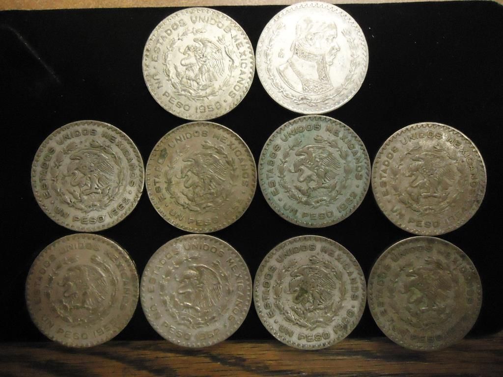 10 MEXICIAN SILVER PESOS .5140 OZ. ASW TOTAL