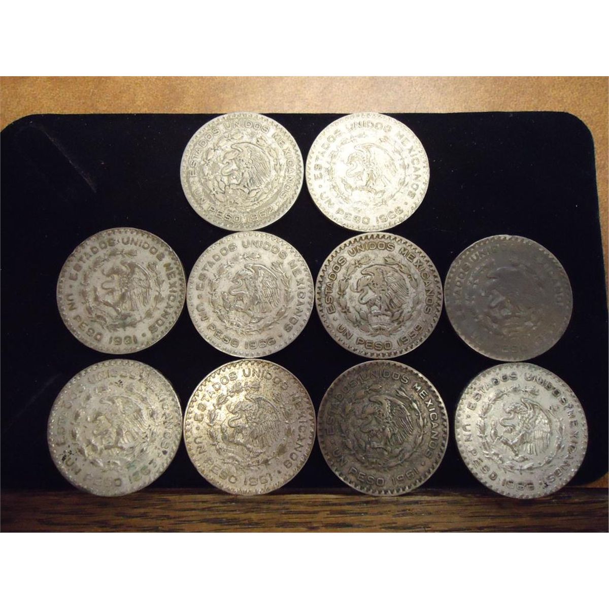 10 MEXICO PESOS SILVER EACH IS .0514 OZ. ASW