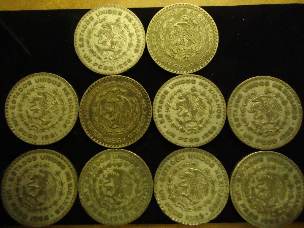 10 MEXICO SILVER PESOS .5140 OZ. ASW TOTAL