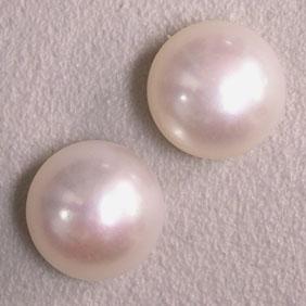 PAIR OF BUTTON SHAPED WHITE FRESHWATER PEARLS. THEY MEASURE 10 MM. HALF DRILLED