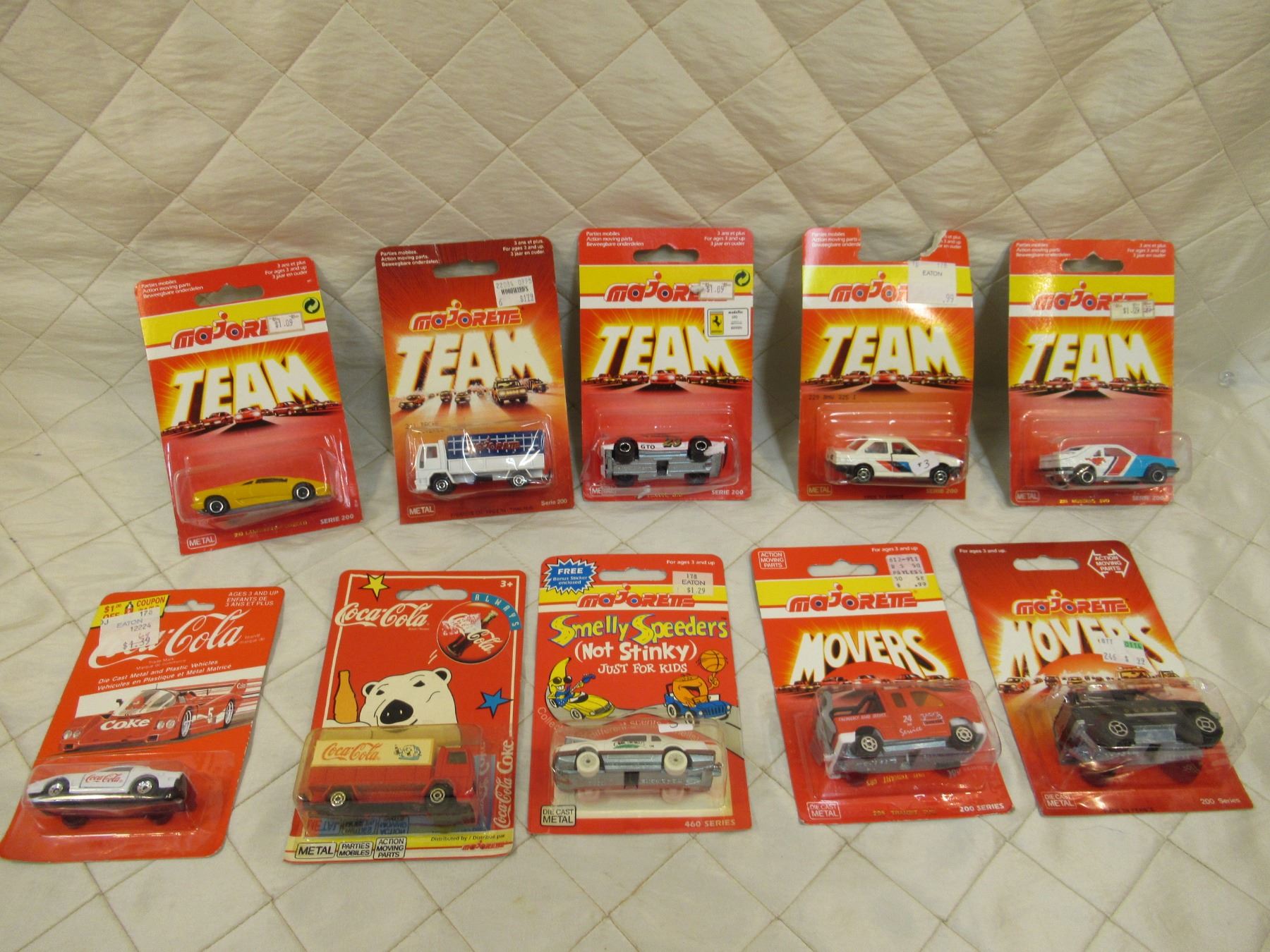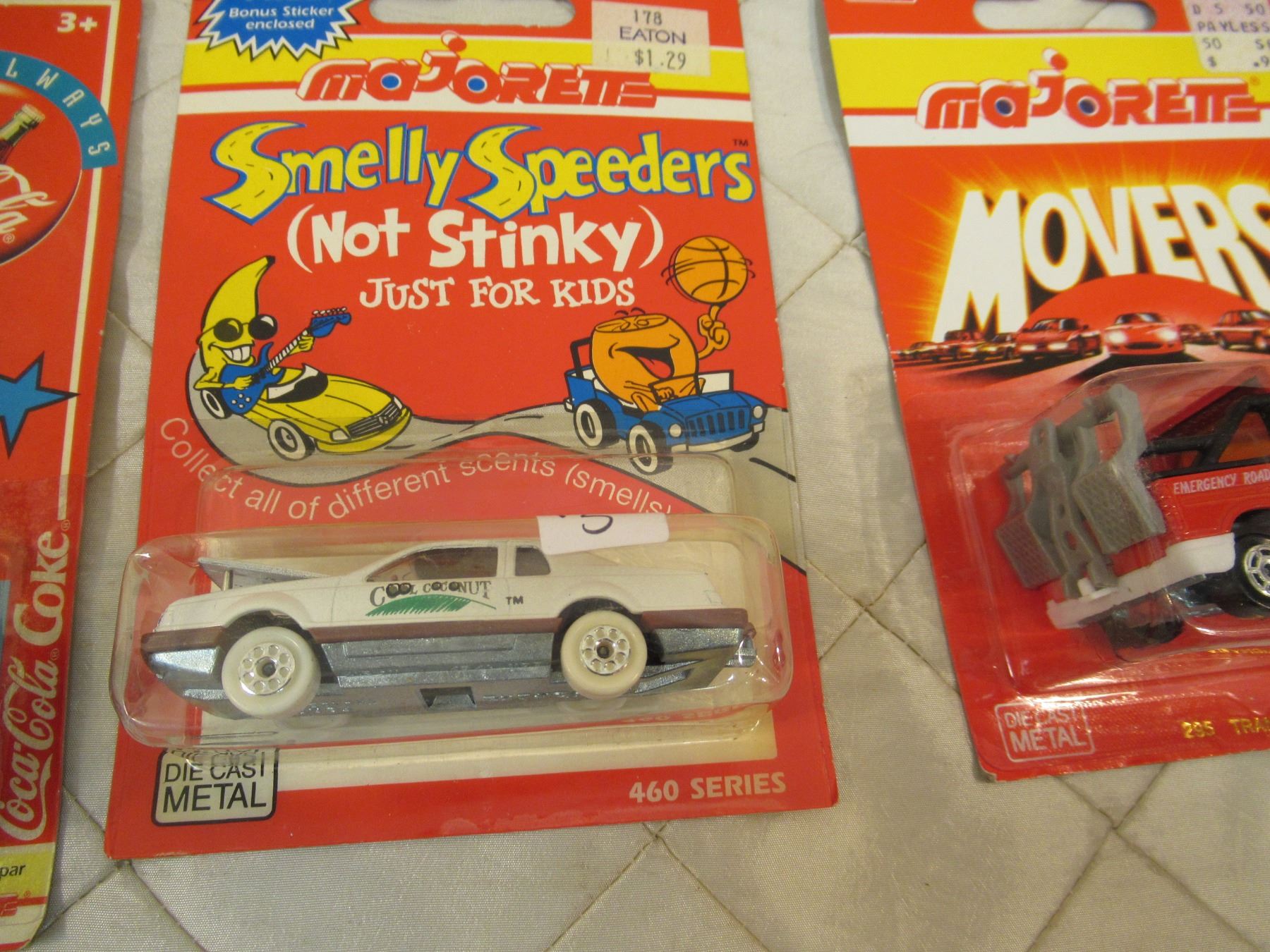 5 Team (1 Team has a broken blister pack), 2 Movers, 2 Coca-Cola, 1 Smelly Speeder