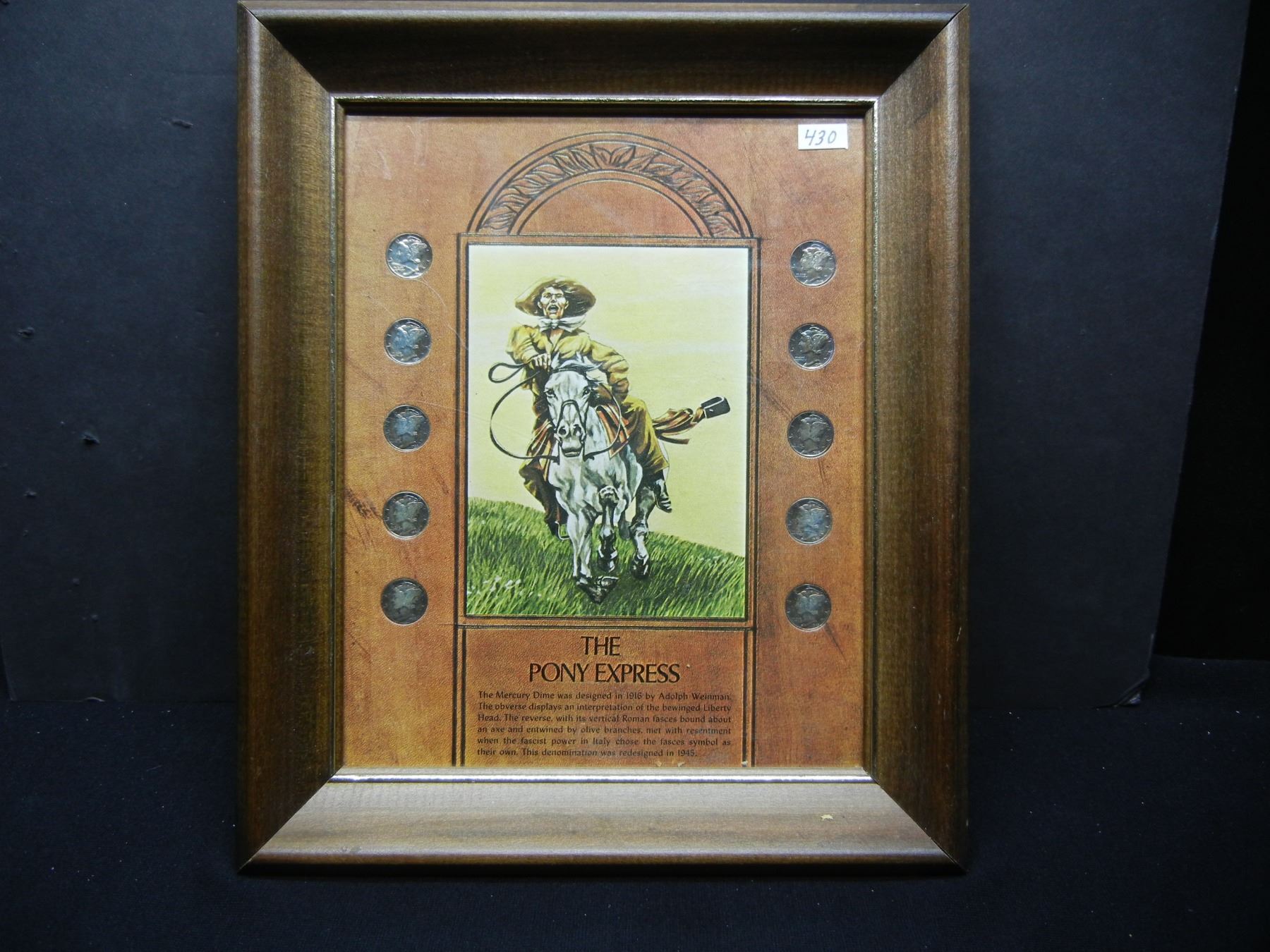 (10) Mercury Dimes In Picture Frame "The Pony Express"