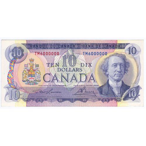 Bank of Canada, $10.00 Million note 1971, grade Choice AU-UNC, Charlton # BC-49c, signature Lawson Bouey, serial TM6000000.