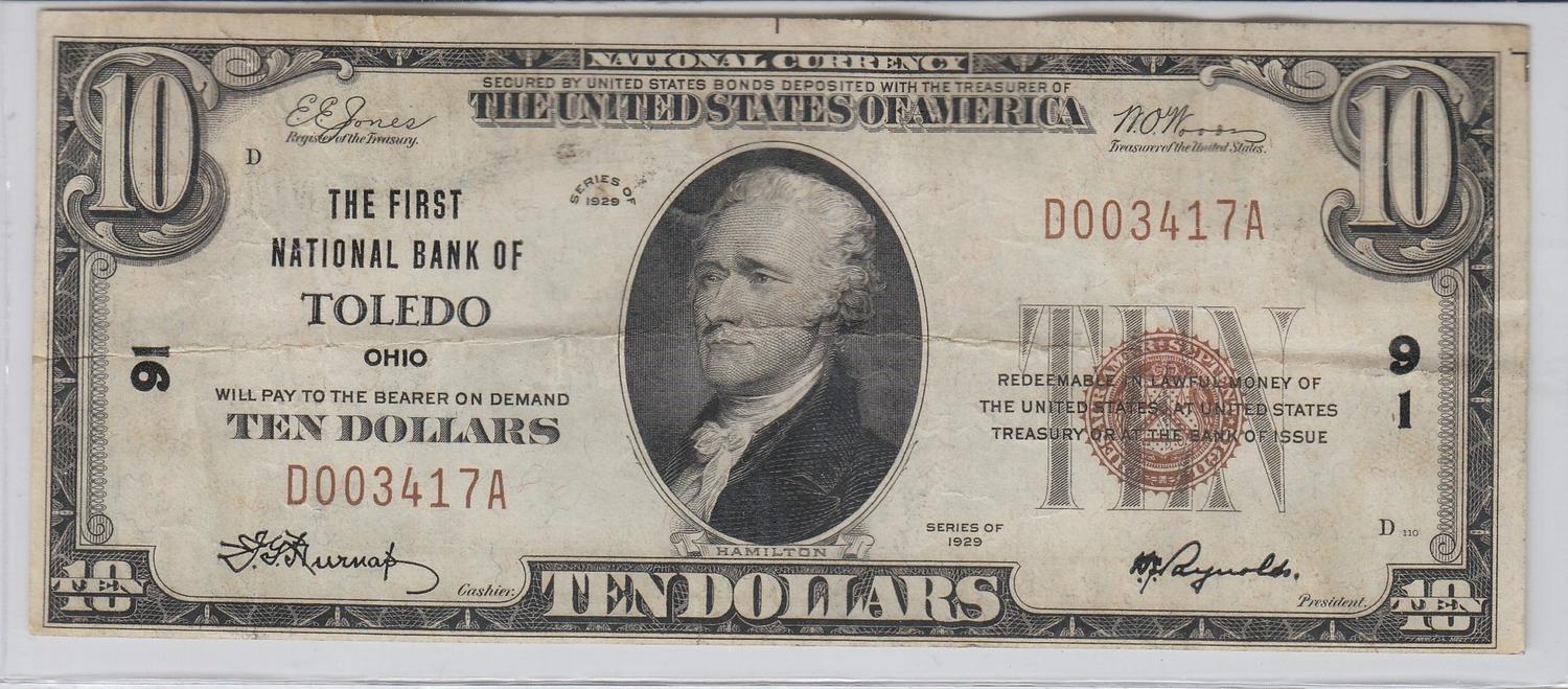 $10 NATIONAL TOLEDO OHIO CHARTER #91 LOW SERIAL