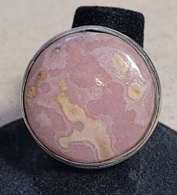 10) NATURAL PERUVIAN PINK OPAL, ROUND BEZEL SET,