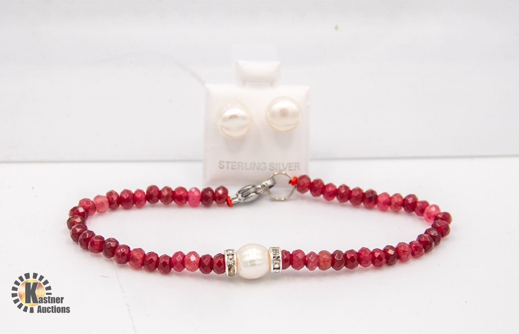 #10- NATURAL RED JADE ,PEARL ,BRACELET & EARRINGS