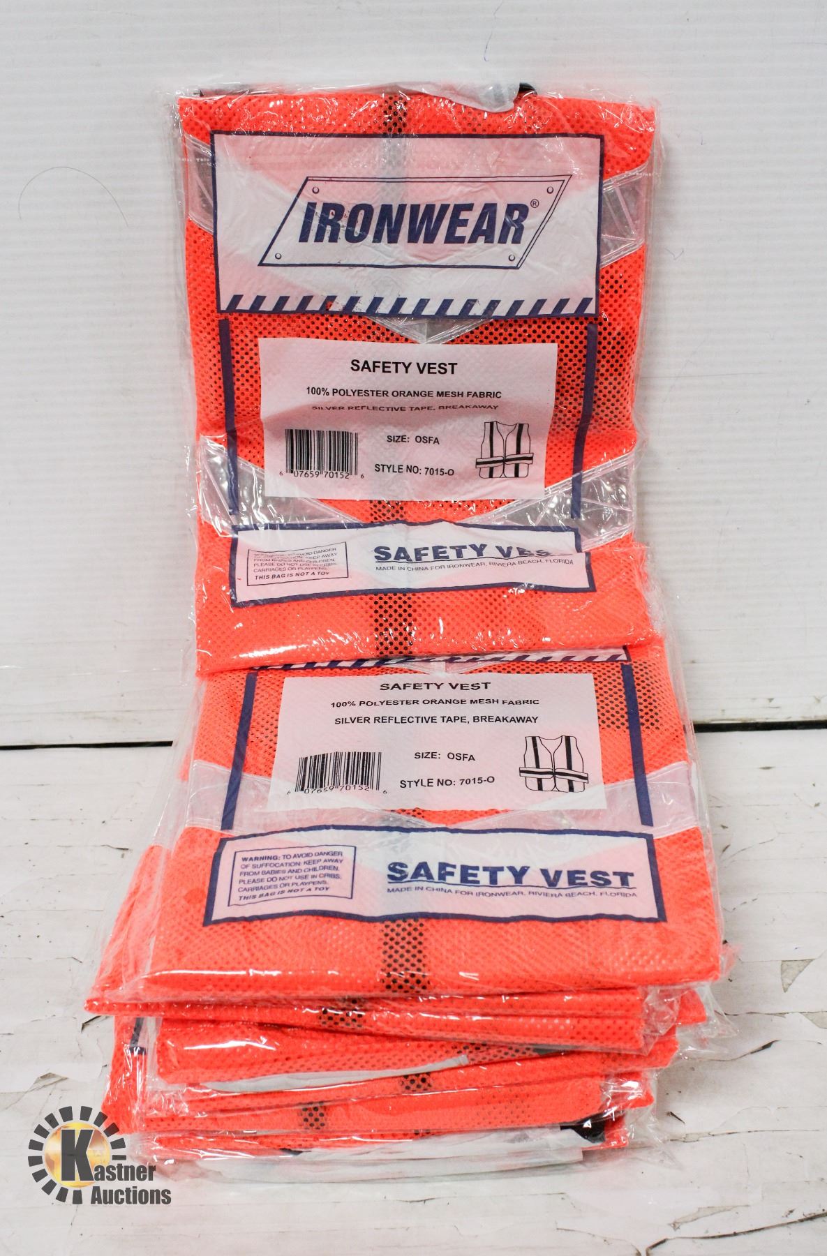 10 NEW IRONWEAR SAFETY VESTS: ONE SIZE FITS ALL