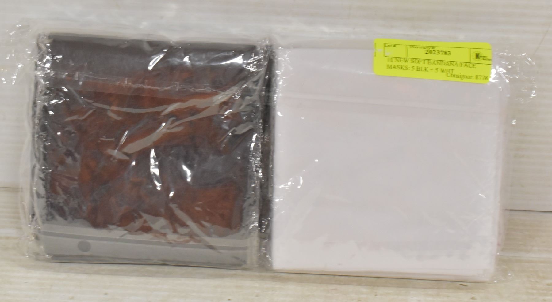 10 NEW SOFT BANDANA/FACE MASKS 5 BLACK + 5 WHITE