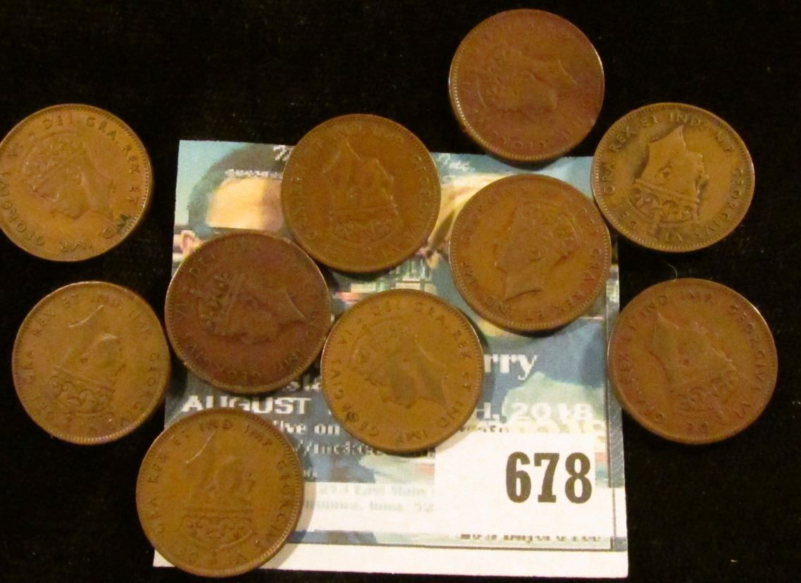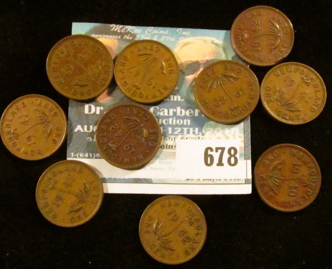 10 NEWFOUNDLAND 1 CENT COINS FROM THE 1940'S