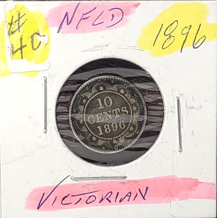 10) NEWFOUNDLAND 1896 VICTORIAN DIME, 92.5%