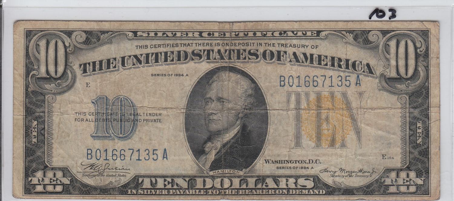 $10 NORTH AFRICA 1934 SILVER CERTIFICATE EMERGENCY ISSUE