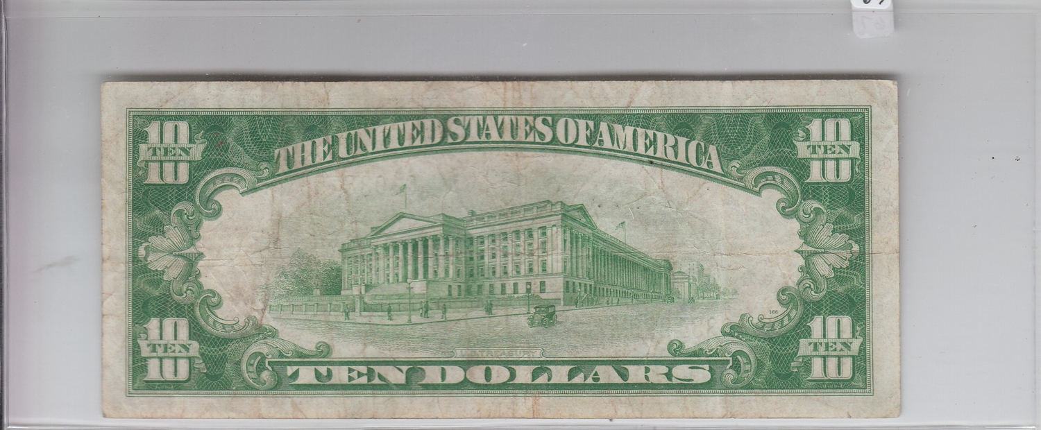 $10 NUMERICAL 7 REDEEMABLE IN GOLD 1928 CURRENCY