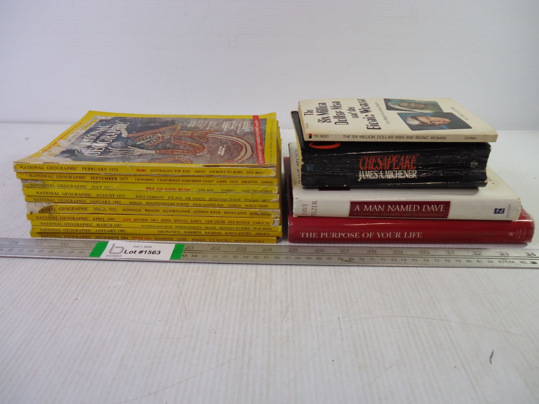 (10) National Geographics-Various Years and (4) Assorted Novels