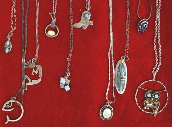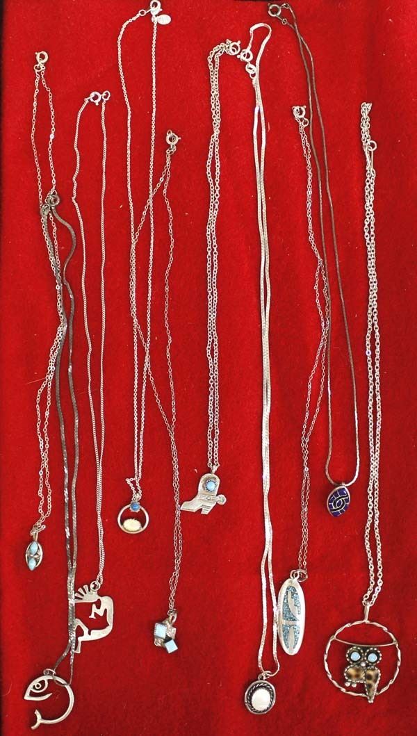 10 Navajo Necklaces, 18'' to 22'' end to end, largest pendant 1.5''