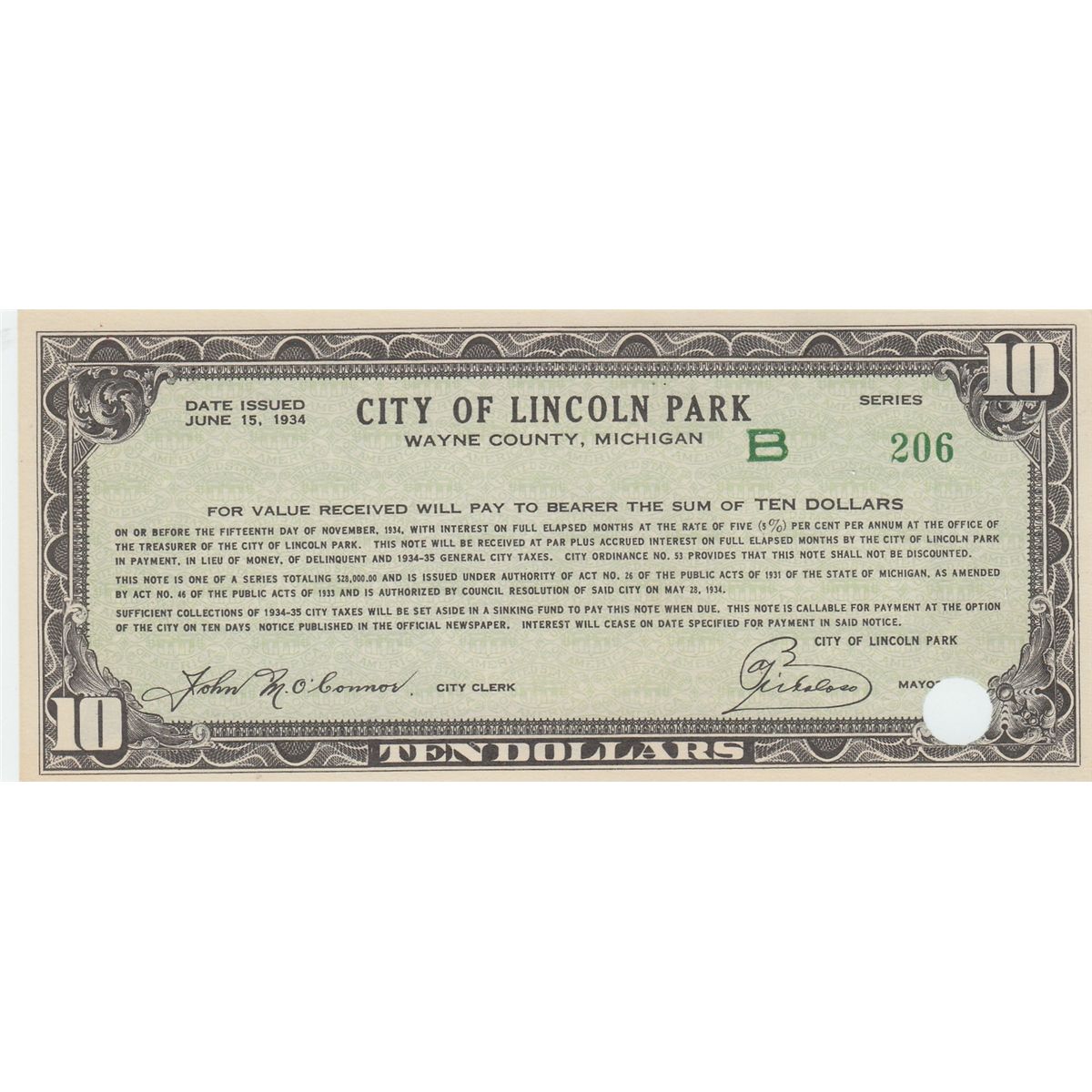 $10 OBSOLETE LINCOLN PARK MICHIGAN