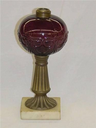 10" OIL LAMP W/ AMYTHEST FONT ON BRASS STEM ON MARBLE BASE;