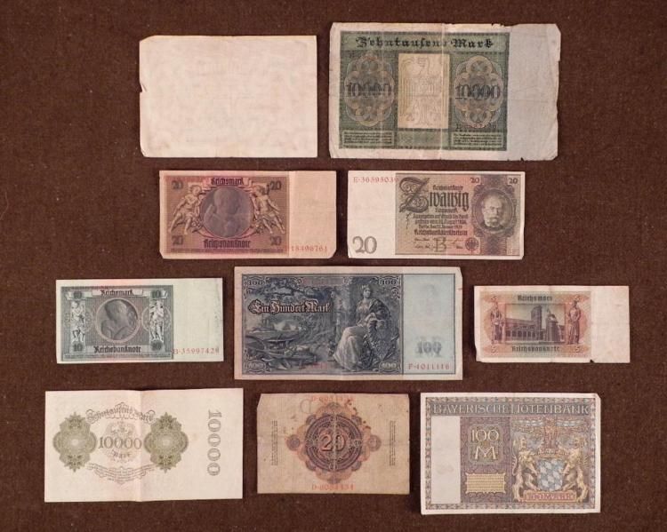 TEN ORIGINAL IMPERIAL GERMAN CURRENCY NOTES-INCLUDING 1 MILLION MARK NOTEVARIOUS DENOMINATIONS
