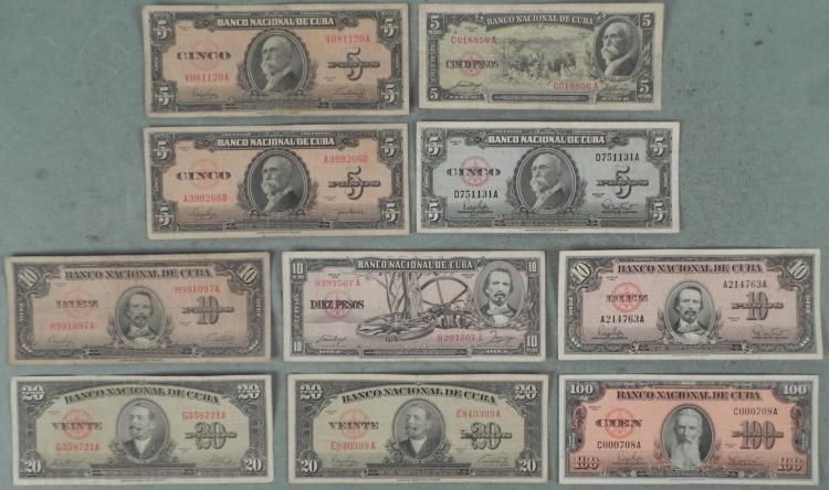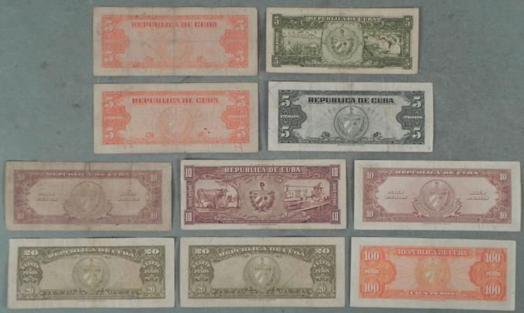 10 Old Diff Cuban Pesos * Dates: 1949-60Included: XF-AU 100 pesos