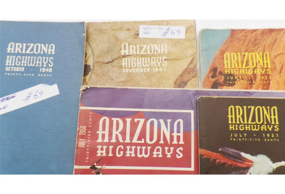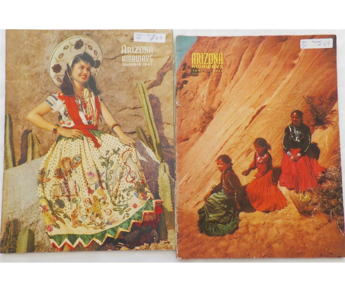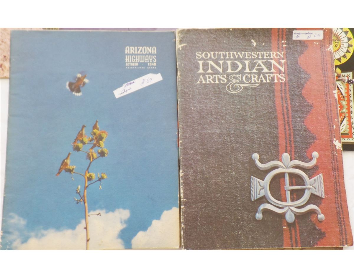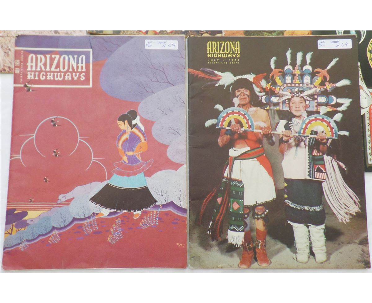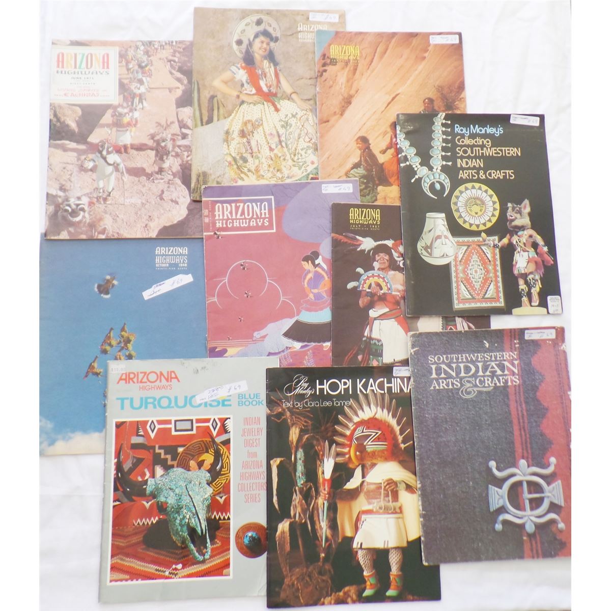10 Older Native American Themed Magazines, most Arizona Highways, some from the late 40's and early 50s. Other magazines are as new as the 1970s. Made of paper and ink and measuring 12" x 9". Southwest-theme. Arizona Highways dates are as follows: 6/51, 7/56, 6/53, 10/48, 11/47, 6/71. Condition: All used, see images. Shipping: $14.50.